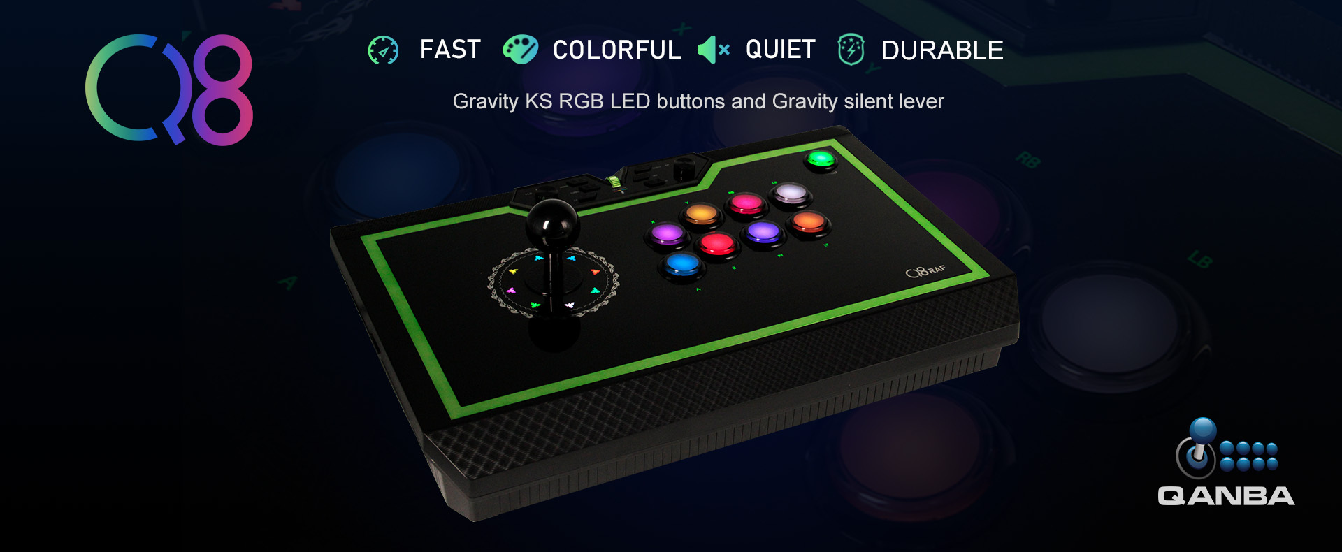 Compatible with PC, For the first time Qanba Gravity Mechanical Shafts Switch Silent Lever and Qanba Gravity KS RGB LED Silent buttons are featured, Gives you a fast input experience like never before, There is also a choice of traditional Sanwa styles